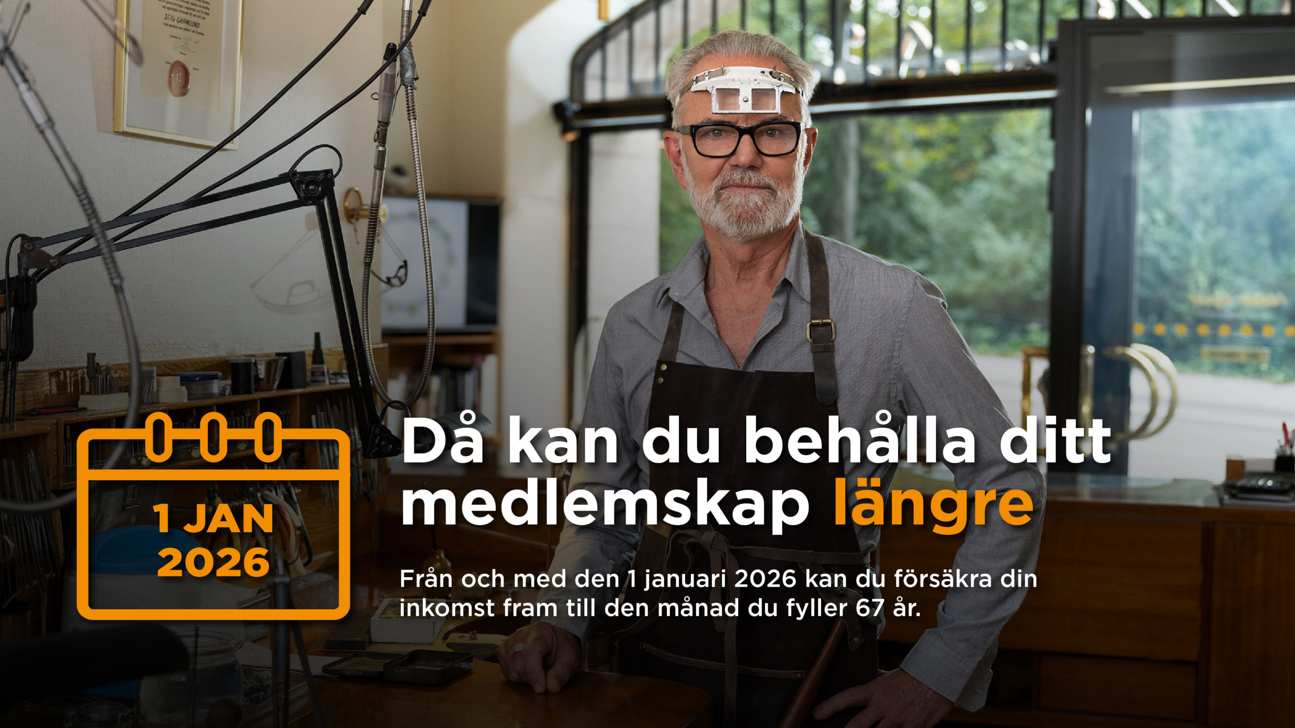 Från och med den 1 januari 2026 knyts den övre åldersgränsen för a-kassa till riktåldern för pension. Då kan man vara medlem och få ersättning fram till den månad man fyller 67 år.