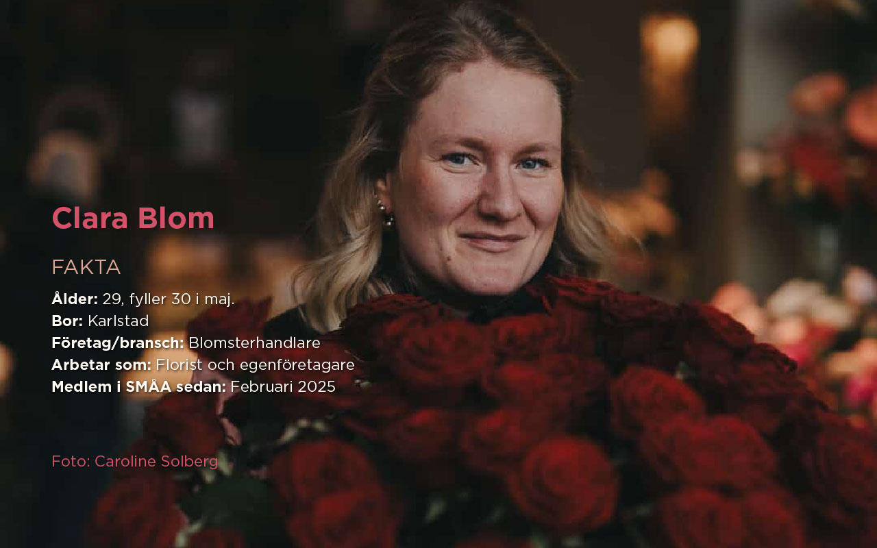Intresset för blommor har funnits sedan barndomen, och när hon 2020 blev sjukskriven efter ett övergrepp blev blommorna en väg tillbaka till vardagen. I dag driver Clara blombutiken Lotus by Clara Blom, men företagsresan började hemma vid köksbordet.
