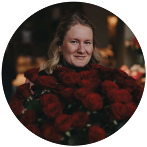 Clara band buketter i sitt kök och när hon började visa upp sitt arbete på Instagram fick hon snabbt förfrågningar. Snart hade hon både brölloppsuppdrag och en växande kundkrets. När köket inte längre räckte till flyttade hon verksamheten till sin pappas bilrekond – och därifrån tog företaget fart.