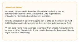 A-kassan jämför dina inkomster under ramtiden med de senaste tre taxeringsåren och baserar ersättningen på den period då du tjänade som bäst. Har du tjänat bra tidigare år kan du få hög ersättning även om du haft lite arbete och låga inkomster det senaste året.
